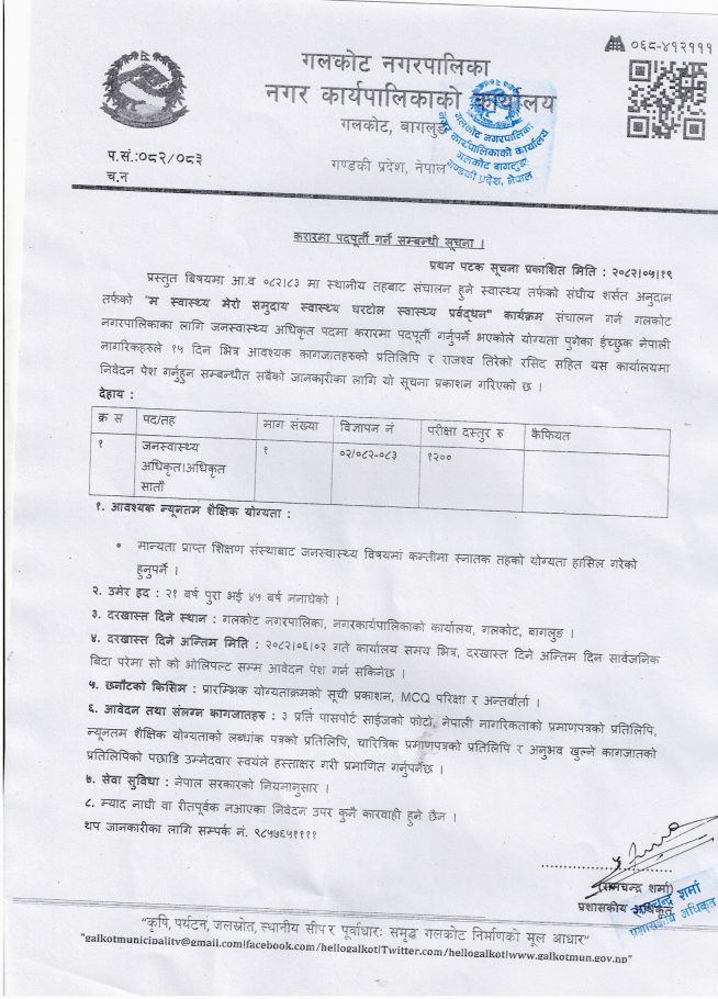 करारमा पदपूर्ती गर्ने सम्बन्धी सूचना ।