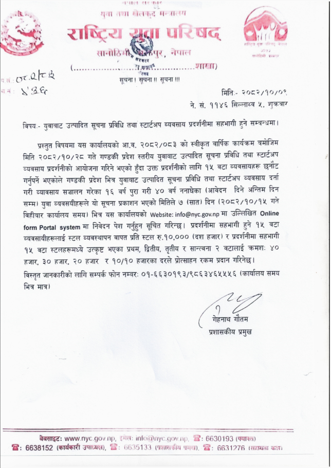 » युवावाट उत्पादित सूचना प्रविधि तथा स्टार्टअप व्यवसाय प्रदर्शनीमा सहाभागी हुने सम्बन्धमा ।