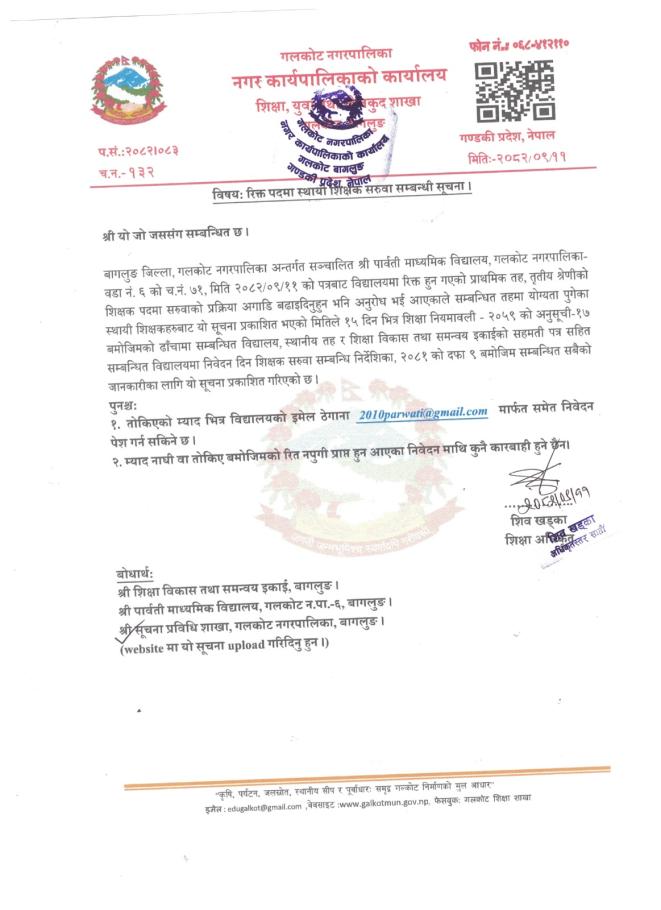रिक्त पदमा स्थायी शिक्षक सरुवा सम्बन्धी सूचना ।