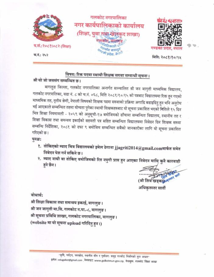 करारमा पदपूर्ती गर्ने सम्बन्धी सूचना ।