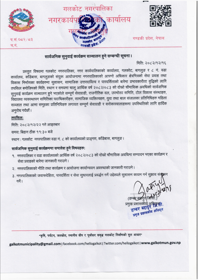 सार्वजनिक सुनुवाई कार्यक्रम सन्चालन हुने सम्बन्धी सूचना ।