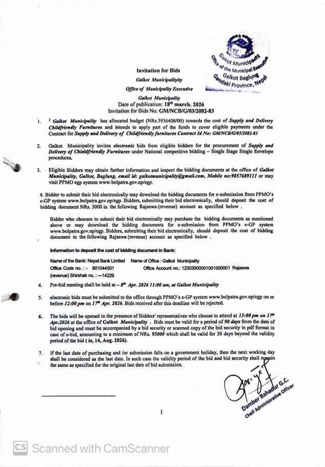 सार्वजनिक खरिद/बोलपत्र सूचना