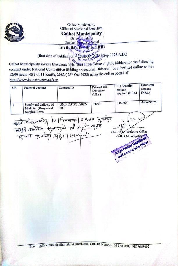 » Invitation for Bids GM/NCB/G/01/2082-083