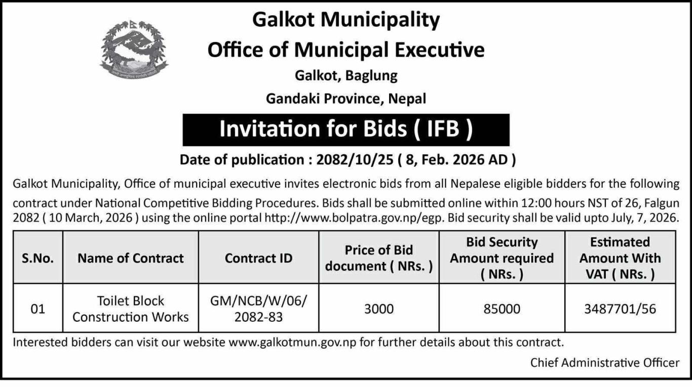 सार्वजनिक खरिद/बोलपत्र सूचना