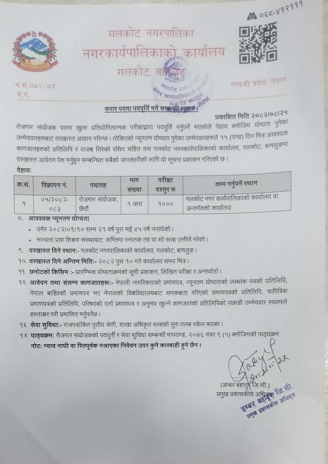 करार पदमा पदपूर्ति गर्ने सम्बन्धी सूचना ।