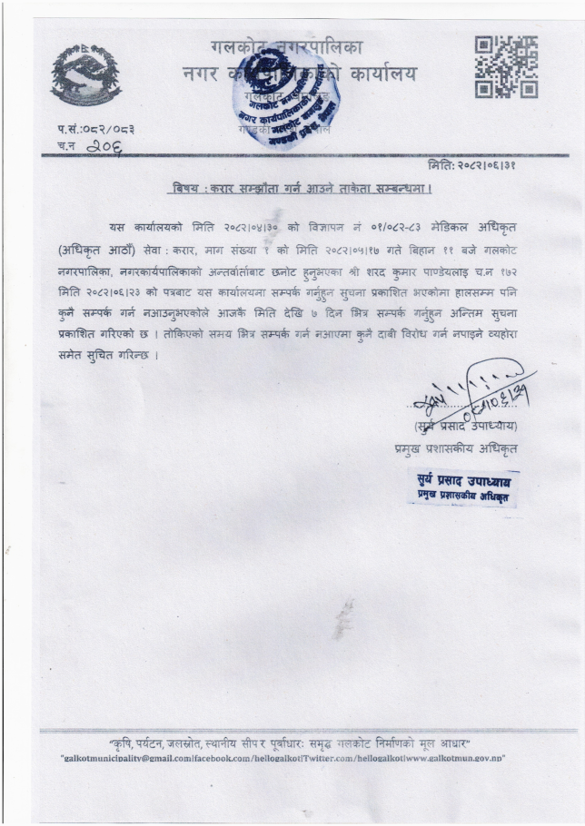 करारमा पदपूर्ती गर्ने सम्बन्धी सूचना ।
