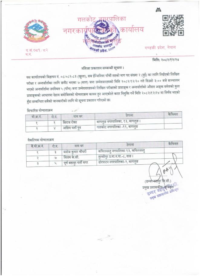 नतिजा प्रकाशन गरिएको सूचना ।
