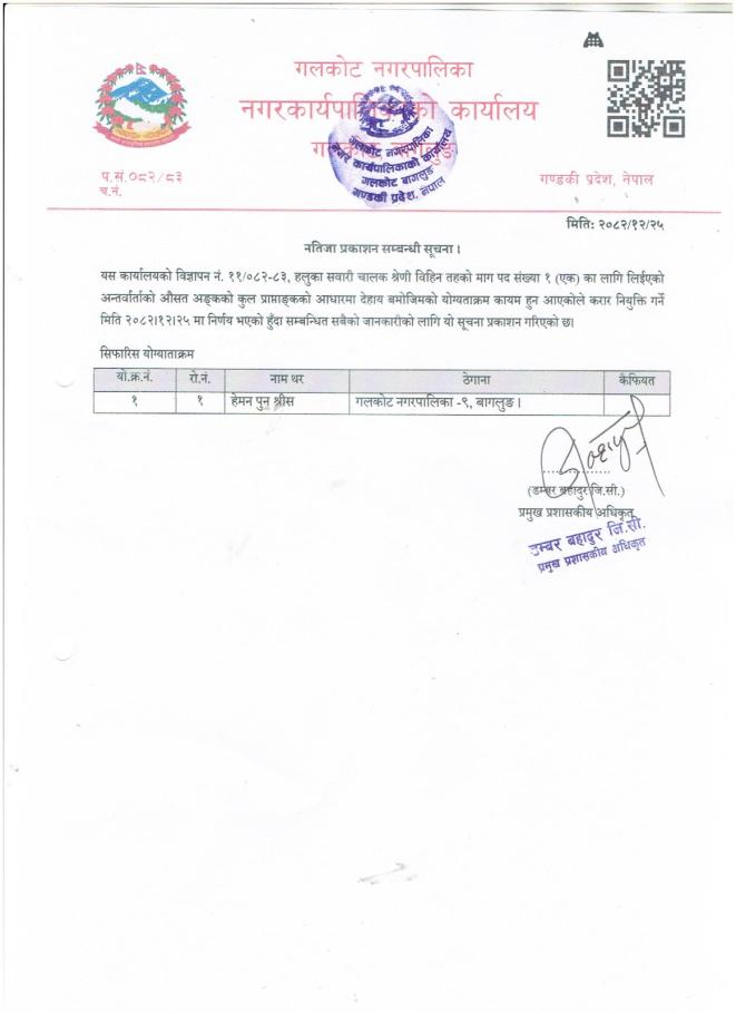नतिजा प्रकाशन गरिएको सूचना ।