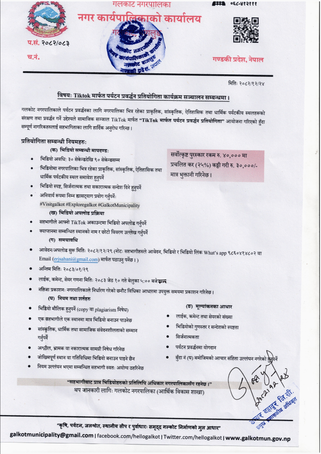 » बिषय :- TIKTOK मार्फत पर्यटन प्रवर्द्धन प्रतियोगिता कार्यक्रम सन्चालन सम्बन्धमा ।