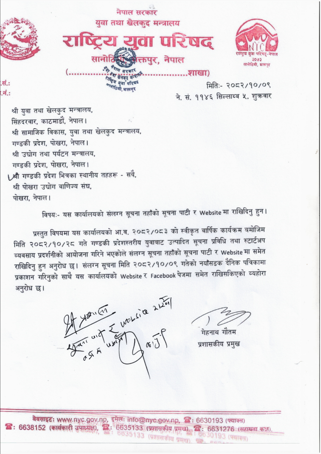 » युवावाट उत्पादित सूचना प्रविधि तथा स्टार्टअप व्यवसाय प्रदर्शनीमा सहाभागी हुने सम्बन्धमा ।