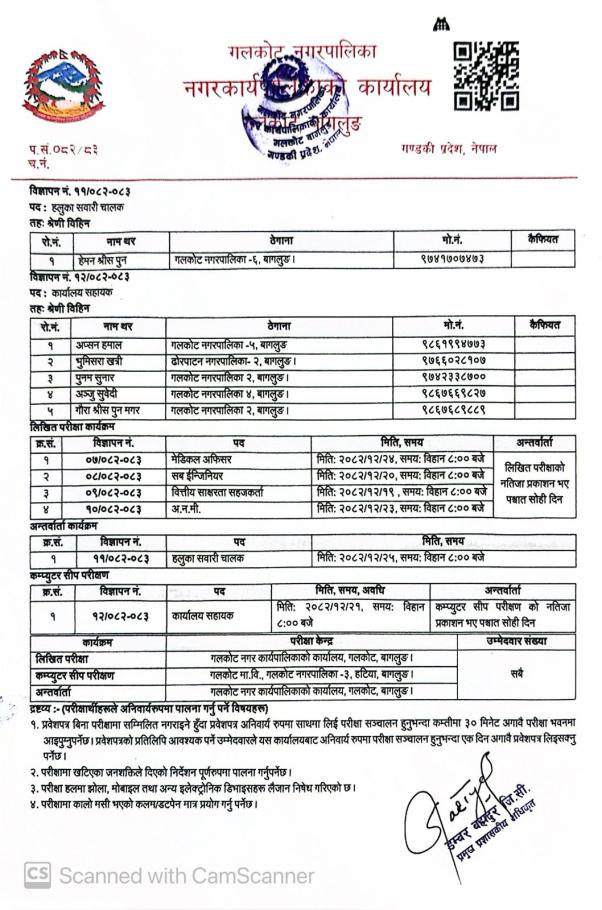 उम्मेद्वार सिफारिस सम्बन्धी सूचना ।