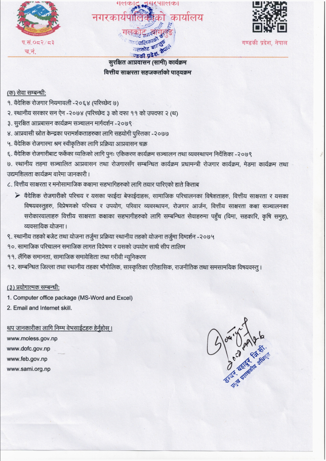 » सुरक्षित आप्रवासन (सामी) कार्यक्रम वित्तीय साक्षरता सहजकर्ताको पाठ्यक्रम ।