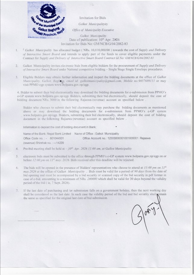 सार्वजनिक खरिद/बोलपत्र सूचना